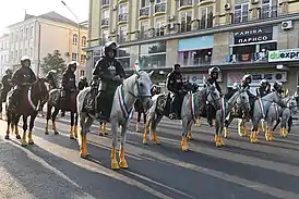 ![]() Конный полицейский батальон на площади Дусти в Душанбе во время парада в 2016 году | |