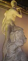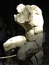 Сохранилась терракотовая модель скульптуры, созданная около 1524 года. У модели отсутствует правая стопа, полностью завершена голова, тогда как голова — едва намечена[2]. Лицо модели почти полностью соответствует лицу побеждённого из скульптурной группы «Дух победы» — густые вьющиеся волосы, словно шапка, длинная борода, широкий нос[3]. Также модель более мускулистая в сравнении с законченным произведением. Спина модели завершена, доработана правая рука. Именно такой её запечатлел в своих зарисовках Тинторетто[4].