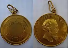 - Золотая медаль «За усердие» для ношения на Аннинской ленте[3].