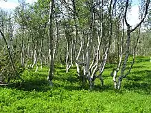 | Секция 2. Кустовидные или немногоствольные деревья, деревья субарктического и субальпийского типа | Берёза извилистая (Betula pubescens var. pumila) | ![]() | ||||