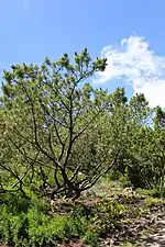 | Подгруппа б. Деревья с лежачим укореняющимся стволом и главными ветвями — стланцы | Кедровый стланик (Pinus pumila) | ![]() | ||||