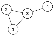 В графе, показанном ниже, дерево с рёбрами 1–3, 2–3 и 3–4 является деревом Тремо, если его корнем назначить вершину 1 или вершину 2 — любое ребро графа принадлежит дереву, за исключением ребра 1–2, которое (при выборе указанного корне) соединяет пару предок-потомок.