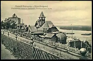 После проведения Всероссийской художественно-промышленной выставки в 1896 году, её территория была отдана под парк-сад, а вокруг сформировался новый селитебный район — Выставочный (Ново-Выставочный) посёлок, официально включённый в черту города в августе 1900 года. Причиной освоения района стал разрушительный пожар на южной окраине Канавина 2 августа 1898 года, уничтоживший Катызовскую слободу. Слободу решили не восстанавливать, а погорельцев переселить. Продажа участков завершилась к середине 1900-х годов. Заселили район мещане, бывшие крестьяне и отставные чины. Застройка Выставочного посёлка была преимущественно деревянной, состояла из одно- двухэтажных домов, с лаконичным архитектурным обликом и добротным накладным декором[30].