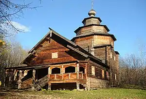 Деревянное храмовое зодчество было довольно разнообразно. В зависимости от архитектурно-художественных и конструктивных особенностей верха храмы делились на типы: клетский, шатровый, многошатровый и ярусный, а также колокольни и звонницы. Наиболее распространённым был тип клетской церкви, имевший много общего с жилыми строениями и составлявшийся из нескольких прирубленных друг к другу клетей[7].