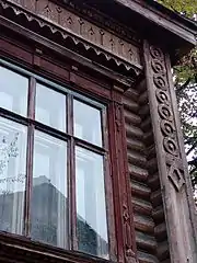 Деревянные усадьбы испытывают на себе влияние каменной городской архитектуры домов-особняков, для которых были характерны завершённые фронтонами ризалиты и эркеры, застеклённые веранды. В объёмно-пространственной структуре деревянного дома возникают акценты, увеличивается протяжённость их фасадов[25].