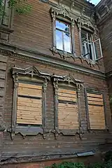 В каменно-деревянном зодчестве города стилистическое и морфологическое единство классицистического декора кирпичной и деревянной частей достигалось тем, что декор деревянной части копировал архитектуру каменных зданий[36]. Господство принципов русского классицизма в стилистике деревянных зданий стало размываться в 1830-е — 1840-е годы. Начался переходный этап от классицизма к ранней эклектике, в основном, за счёт обогащения фасадов декоративными элементами[37].
