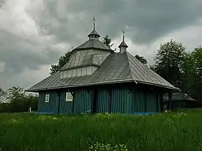 Для Подолья типовой является трёхверховая церковь с высокими срубами. Характерной их чертой является вертикальная обшивка досками, гонтовый верх и крыльцо при входе. Верх церкви составляли три купола, из которых средний был выше. Обычно подольская церковь стояла на просторном месте, чаще посередине села. Церковный двор был обсажен липами. Напротив главных дверей церкви стояла башня с колоколами, покрытая также гонтом. В давние времена возле церквей были кладбища.