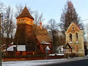 | Ляховице | ![]() | Костёл Свв. апостолов Петра и Павла в Ляховицах | Построен в 1789 году, типичный представитель позднеготического стиля южнопольского деревянного костёла |