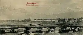 Деревянный мост был построен в 1869 году. Отмечен на карте города 1871 года[1]. Отмечен на плане города Владикавказа 1911 года[2]. Первоначально использовался для гужевого и пешеходного движения. Позже стал использоваться и для автомобильного транспорта. В частности, в 1930-х гг. по мосту проходил один из первых маршрутов городского автобуса[3].