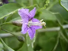Кустарник до 2 м высотой. Цветки розово-жёлтые. Южная Африка, натурализовалась в Австралии и Новой Зеландии. Декоративное растение, агрессивный сорняк. Номенклатурный № GRIN: 316381. англ. African boxthorn. |