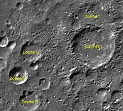 - Образование сателлитного кратера Дерфель S относится к позднеимбрийскому периоду[1].