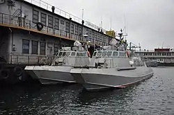 - десантный катер проекта 58181 «Кентавр» (два боевых модуля с 7,62-мм пулемётом и 30-мм автоматическим гранатомётом АГС-17)[11]