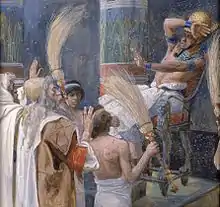 Согласно книге Исход, Моисей именем Бога требует от фараона отпустить его народ, обещая, что в противном случае Бог накажет Египет. Фараон не послушался, и на Египет были обрушены 10 бедствий, причём каждый раз после нового отказа фараона отпустить евреев следовало очередное бедствие: