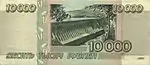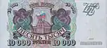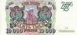 Неденоминированная банкнота 10 000 рублей впервые вошла в обращение в 1992 году после резкого падения стоимости рубля Российской Федерации и его курса по отношению к мировым валютам. (1 доллар США = 900 рублей).