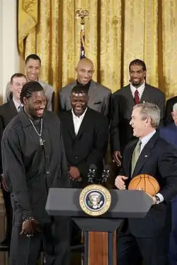 - Pistons retire Ben Wallace's jersey, honoring 2004 NBA champ (англ.), USA TODAY. Дата обращения 23 июня 2018.
