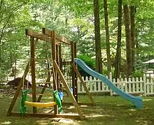 - Детская горка — сооружение с гладким наклонным спуском и лесенкой, позволяющей забираться на верхнюю площадку и скатываться вниз.