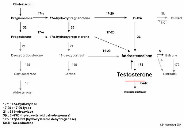 ![]() 5-альфа-редуктаза производит дигидротестостерон | |