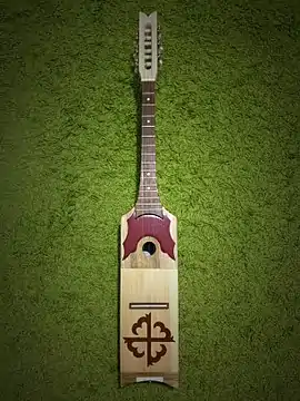 Инструмент имеет деревянный, выдолбленный из одного куска дерева корпус удлинённой формы с плоской верхней и изогнутой нижней декой, и традиционно изготавливался из орехового дерева.