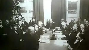 То, что эта проблема касалась не только ГОИ, но других научных учреждений, показало обсуждение работы ведущих физических школ, возглавляемых академиками Д. С. Рождественским и С. И. Вавиловым (ГОИ), А. Ф. Иоффе(ФТИ) и Л. И. Мандельштамом (МГУ) на сессии Академии наук СССР в марте 1936 года[9][10]. Д. С. Рождественский выступил дважды — с докладом «Анализ спектров и спектральный анализ» и ещё раз при обсуждении доклада А. Ф. Иоффе. С. И. Вавилов в своем докладе «Пути развития Оптического института»[11] уделил особое внимание вопросам взаимодействия ГОИ с промышленными предприятиями и на конкретных примерах показал необходимость тесной связи науки и производства. Он говорил: «Неразрывная линия от глубоко научных до технических проблем, связывающая загадки квантовой электродинамики с трудностями в технологии шамотного горшка, в котором плавится оптическое стекло, — эта линия была и должна, по нашему мнению, остаться осью Оптического института». Сессия в основном подтвердила правильность выбранного ГОИ пути развития и, в отличие от ФТИ, его ориентацию на нужды промышленности. Заслушав доклады и достаточно бурную полемику между руководителями ГОИ и ФТИ, большинство участников сессии поддержали научную деятельность ГОИ и его усилия по развитию оптико-механической промышленности. Работы ФТИ в области теоретической и ядерной физики также были одобрены, но с одновременной критикой того, что было названо в резолюции сессии «неналаженностью правильных отношений между физической наукой и практикой народного хозяйства».