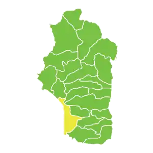 Район расположен в южной части мухафазы Латакия. На востоке граничит с мухафазой Хама, на юге с мухафазой Тартус, а на севере с районами Латакия и Эль-Кардаха. На западе омывается Средиземным морем.