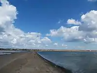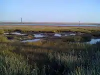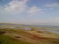 | Озёра Джарылгач (на заднем плане) и Ярылгач (северный залив; на переднем плане) | Солончаки у западного побережья озера и само озеро (на заднем плане) | Ярылгачский перешеек — между бухтой и озёрами. Ближе к Ярылгачскому заливу проходит дорога Т-01-07 | Озеро Джарылгач (справа) и резервуар с грязями (затопленный водой; слева). Дорога Межводное—Красная Поляна (вид на север) |