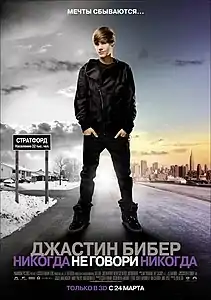 «Джастин Бибер: Никогда не говори никогда» (англ. Justin Bieber: Never Say Never) — трёхмерный документальный фильм, посвящённый жизни и творчеству певца Джастина Бибера. В США и Канаде премьера фильма состоялась 11 февраля 2011 года[2], в России прокат планировался на 24 марта[3], однако из-за землетрясения в Японии в итоге картина вышла лишь на DVD.