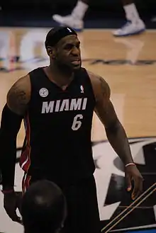 Лебро́н Рэймон Джеймс (англ. LeBron Raymone James; род. 30 декабря 1984 года, Акрон, Огайо, США)[4] — американский баскетболист, играющий на позиции лёгкого и тяжёлого форварда. Выступает за команду Национальной баскетбольной ассоциации «Лос-Анджелес Лейкерс».
