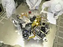 ![]() Главное зеркало телескопа Джеймса Уэбба собранное в Центре космических полётов им. Годдарда (28 октября 2016 г.) | |