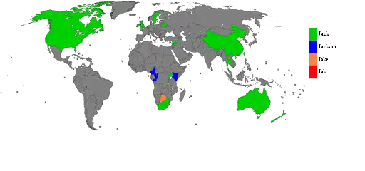 Следующая таблица даёт подробный обзор популярности имени Джек и его вариаций в разных странах, по которым имеются статистические данные.