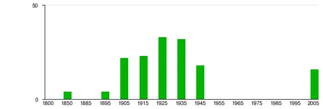 Существенный рост использования имени в Англии зафиксирован с начала 1900-х годов. Изменения демонстрирует следующий график.