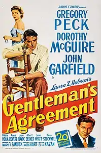 «Джентльменское соглашение» (англ. Gentleman's Agreement) — драма 1947 года режиссёра Элиа Казана, по одноимённому роману Лауры Хобсон. Три премии «Оскар» (1947).