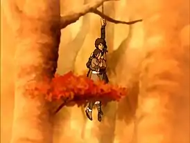 ![]() Джет поднимается с Катарой в своё убежище на дереве | |||||
