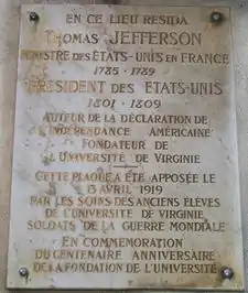 В 1785—1789 годах Джефферсон занимал должность посла во Франции, которая активно помогала американским повстанцам, где жил на Елисейских Полях и был популярен в свете. Задачей Джефферсона была координация и дальнейшее развитие отношений между двумя странами. По этой причине Джефферсон в 1787 году не мог участвовать в принятии Конституции США, однако в целом поддержал её, несмотря на отсутствие статей, затем вошедших в Билль о правах. Переписка Джефферсона велась через разработчика конституции, друга и соратника Томаса Джеймса Мэдисона.