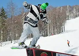 ![]() Сноубордист во время выполнения джиб-трюка | |