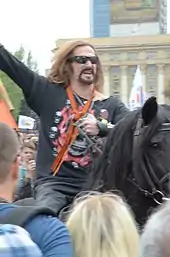 - Пятницкая, Саша Джигурда на митинг 9 мая в Донецке прискакал на коне. Комсомольская правда (9 мая 2014).