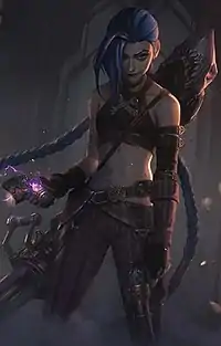 Джинкс была добавлена в League of Legends в качестве игрового чемпиона в октябре 2013 года[13]. Согласно легенде, придуманной Грэмом МакНилом, когда-то Джинкс была юной невинной девушкой из Зауна, захудалых трущоб утопического города Пилтовер. Она разделяет тёмное и таинственное прошлое с Вай, ещё одним чемпионом из игры[11]. Столкнувшись с трагедией в детстве, подросшая Джинкс стала «жестокой и импульсивной», а её анархические наклонности «стали известны на весь мир». Среди самых громких её преступлений выделяются: выпуск на волю экзотических животных, нарушение торговли путём обкладки городских мостов разрушительной взрывчаткой и ограбление одной из самых надежных сокровищниц Пилтовера[11]. Разработчики игры позаботились о том, чтобы персонаж быстро передвигался по ходу игры, чтобы изобразить её хаотичный характер и гиперактивность[9].