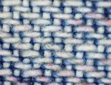- Джин — дешёвая, равномерно окрашенная ткань, разновидность денима, нити переплетены по диагонали.