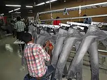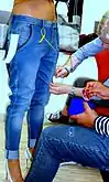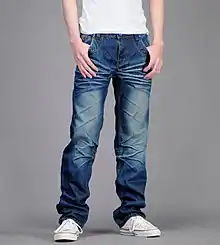 Джи́нсы — брюки из плотной хлопчатобумажной ткани с проклёпанными стыками швов на карманах. Впервые массово изготовлены в XVII веке моряками из отходов прорвавшихся парусов почти одновременно во всех странах, ходивших под парусами. Изначально были некрашенными, в основном белыми, а после того, как самым дешевым красителем стал цвет "индиго" - стали синими.