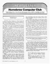 5 марта 1975 года[57] состоялось первое собрание группы энтузиастов, называвших себя «Клубом самодельных компьютеров» (Homebrew Computer Club). Члены клуба собирались в Менло-Парке, в гараже Гордона Френча, безработного инженера. Все они также были инженерами и «фанатами» компьютерной техники, объединяло их желание изменить бытующее представление о компьютерах, как об очень дорогих и громоздких устройствах, требующих в использовании специальных навыков. Внедрение новых технологий в жизнь простых людей предполагалось через пропаганду самостоятельного проектирования и кустарного изготовления компьютеров. На встрече присутствовал Стив Возняк. Уже после первого собрания он с большим рвением взялся за проектирование машины, позднее получившей известность как Apple I. Клуб стал для Возняка вторым домом, тем более что идеи, звучавшие на собраниях, становились всё более дерзкими и грандиозными, речь шла уже о целой «компьютерной революции» в интересах всего человечества[58]. Такая постановка задачи полностью отвечала взглядам Возняка, и уже к концу июня он получил первый уникальный для того времени результат: вывод на экран символов, набираемых на клавиатуре. Воз тут же продемонстрировал своё изобретение Стиву Джобсу, на которого оно произвело огромное впечатление[59].