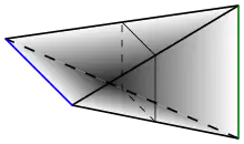 Реализация джойна двух отрезков (синего и зелёного) как подмножества в трёхмерном пространстве. Джойном является весь трёхмерный многогранник.