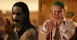 ![]() Джаред Лето в роли Джокера в фильмах «Лига Справедливости Зака Снайдера» (слева) и «Отряд самоубийц» (справа) | |