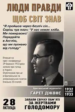 - В 2008 году украинский режиссёр Сергей Буковский снял фильм «Живые» — документальную ленту о голоде 1932—1933 годов и попытках Гарета Джонса рассказать о нём на Западе[29][30]. Премьера фильма состоялась 21 ноября 2008 года в киевском Доме кино. В феврале 2009 года фильм был показан на Берлинском кинофестивале[31][32].