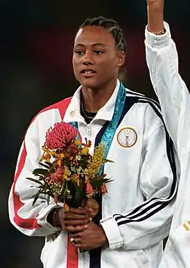 Марион Джонс(-Томпсон) (англ. Marion Lois Jones-Thompson; род. 12 октября 1975[1][2][3][…], Лос-Анджелес, Калифорния) — американская легкоатлетка, специализировалась в спринте и прыжках в длину. На Олимпийских играх 2000 года завоевала три золотые и две бронзовые медали, которых была лишена в 2007 году из-за доказанного намеренного употребления допинга перед соревнованиями. В 2008 году отбывала тюремное заключение за лжесвидетельство в суде по делу о её допинговом скандале[4].