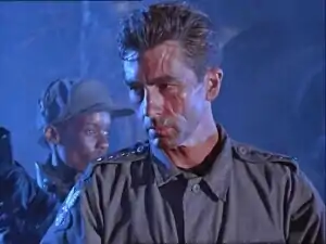 Генерал Джон Коннор (актёр — Майкл Эдвардс) во время решающего сражения (кадр из фильма «Терминатор 2: Судный день» | |