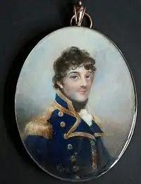 ![]() Джордж Стюарт в военно-морской форме капитана. Акварель на слоновой кости работы Энн Ми. | |