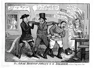 19 июля 1822 года в Вестминстере на Сент-Олбенс-Плейс в паб «Белый Лев» вошёл солдат гренадерского полка, женственного вида, по имени Джон Моверли, несколько раз входил и заходил, наконец спросил пинту пива и удалился в пристройку во дворе паба (заднюю гостиную, parlour). Затем появился епископ, в своём церковном облачении, так же несколько раз входил и заходил, также спросил пиво и ушёл туда же. Тогда хозяин и его зять взяли несколько свидетелей, сперва посмотрели в окно, а затем, потрясенные увиденным, вызвав официального констебля (watchman) и 12 свидетелей из посетителей паба, вломились в заднюю гостиную и застали там обоих со спущенными штанами; по одним данным, «гнусная сцена» заключалась в том, что солдат собирался войти в подставленную жопу епископа, по другим, епископ сам употреблял гренадера Моверли в жопу…[1] По «Акту о содомии» 1533 года, действовавшему до 1828 г., это составляло уголовное преступление, безальтеративно каравшееся смертной казнью. В георгианское время случаи смертной казни за содомию были сравнительно нередкими, однако люди высшего общества, как правило, за это не преследовались и не осуждались.