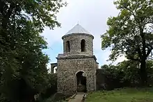 Сооружённая из камня колокольня имеет квадратную в плане форму. Второй круглый ярус имеет шесть оконных проёмов[3]. Она частично разрушена.