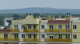 ![]() Вид холма Дзевича-Гура из познанского района Пёнтково. На вершине холма видна пожарная башня | |