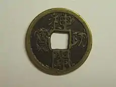 Медные монеты, выпускавшиеся в период с 765 по 796 годы, получили название дзинго-кайхо. Они имели диаметр около 23 мм, а вес — между 3,4 и 4,5 граммов.