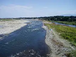 Берёт начало на горе Каорэдакэ в префектуре Гифу. В результате добычи кадмия вода ниже по течению была загрязнена вредными веществами[3][4].